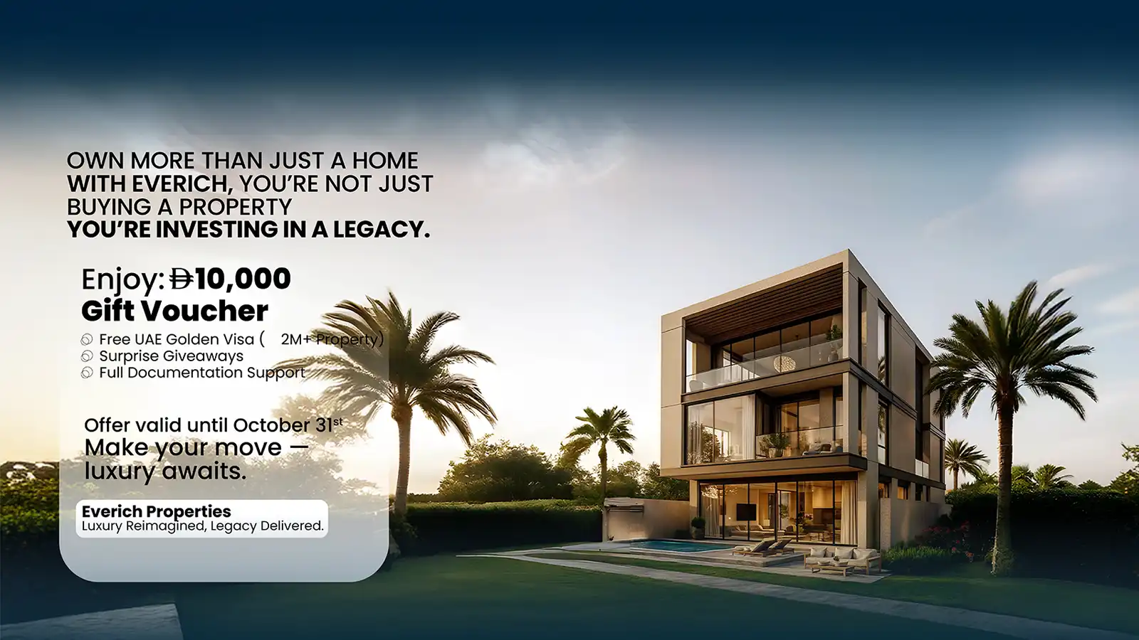 Welcome to Everich Properties, the best real estate company in Dubai, where luxury and trust converge. We are one of the prominent real estate agents in the UAE that deals with residential, commercial, and investment properties, delivering hassle-free options in buying, selling, renting, and managing properties.